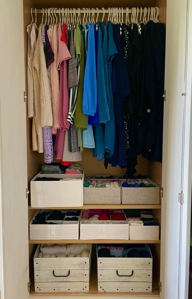 Mijn focus ligt op zelfredzaamheid en duurzaamheid. Bij het organiseren bied ik je tools aan om na mijn hulp zelf je ruimtes georganiseerd te kunnen houden. Daarnaast vind ik het belangrijk dat wij samen kijken naar wat jij al in huis hebt om je ruimtes te organiseren. Ik koop graag zo min mogelijk in, zodat de kosten voor jou en de druk op de planeet zo laag mogelijk blijven.